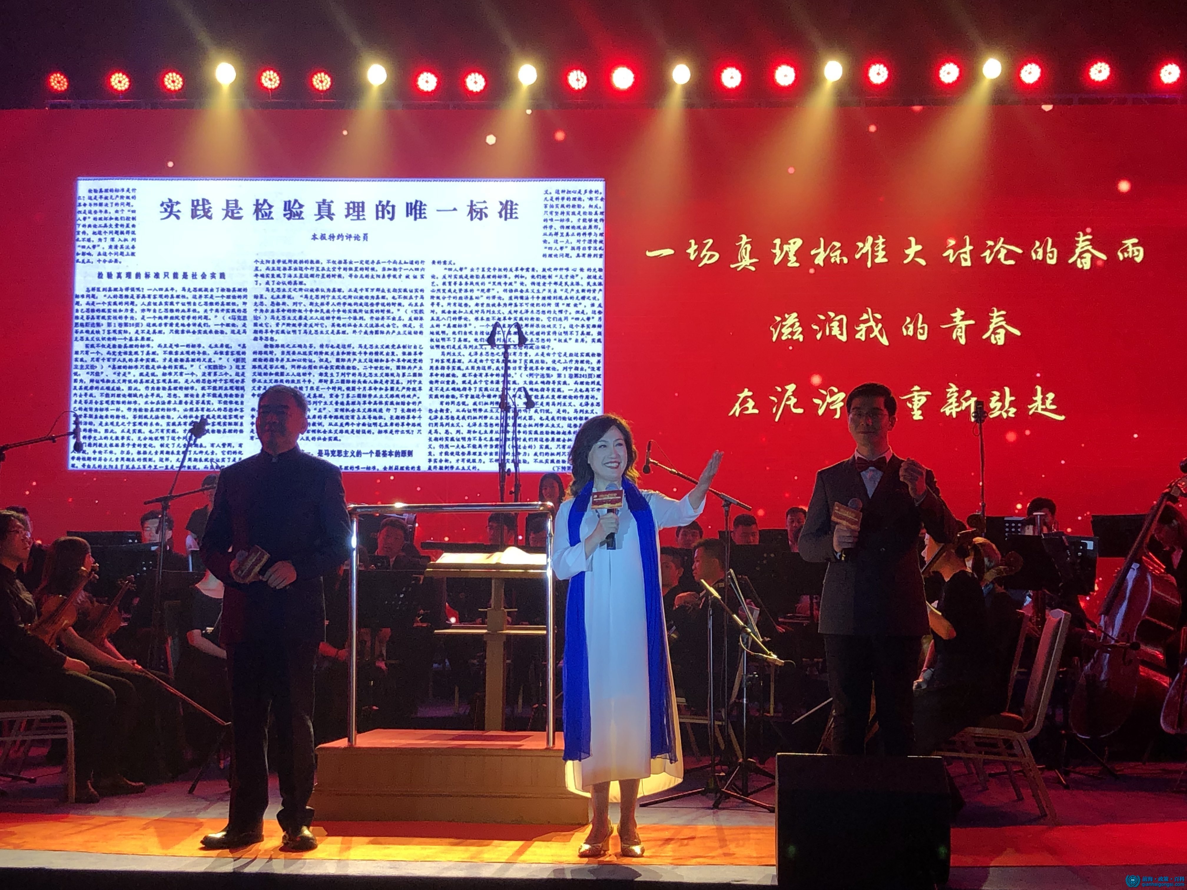 以交響樂《國際歌》、詩朗誦《破曉的曙光》、歌曲《不忘初心》, 深情回顧了老一輩共產黨人的崢嶸歲月,謳歌他們為民族獨立和人民解放而英勇奮斗的偉大精神,帶領大家追尋中國共產黨人的初心和使命。
